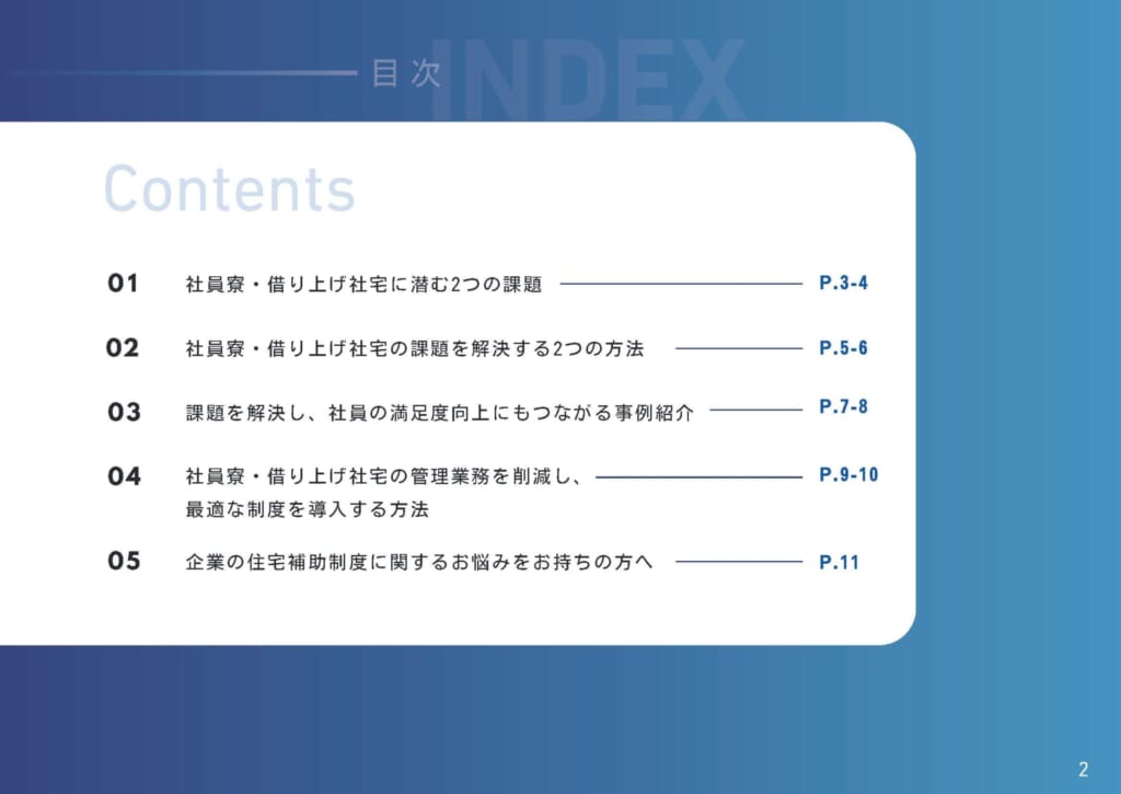 - 1章社員寮・借り上げ社宅を保有する企業が抱える2つの課題(P2~P4)