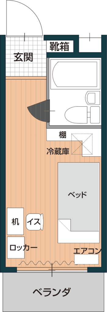 | 居室タイプ Aタイプ 水回り無し Bタイプ 洗面化粧台付き Cタイプ バス・トイレ・洗面化粧台・ミニキッチン付き Dタイプ バス・トイレ・洗面化粧台付き/ミニキッチン無し | Dタイプ | ||