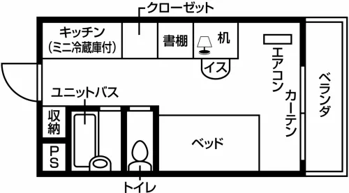 | 入居可 | 居室タイプ Aタイプ 水回り無し Bタイプ 洗面化粧台付き Cタイプ バス・トイレ・洗面化粧台・ミニキッチン付き Dタイプ バス・トイレ・洗面化粧台付き/ミニキッチン無し | Cタイプ | |